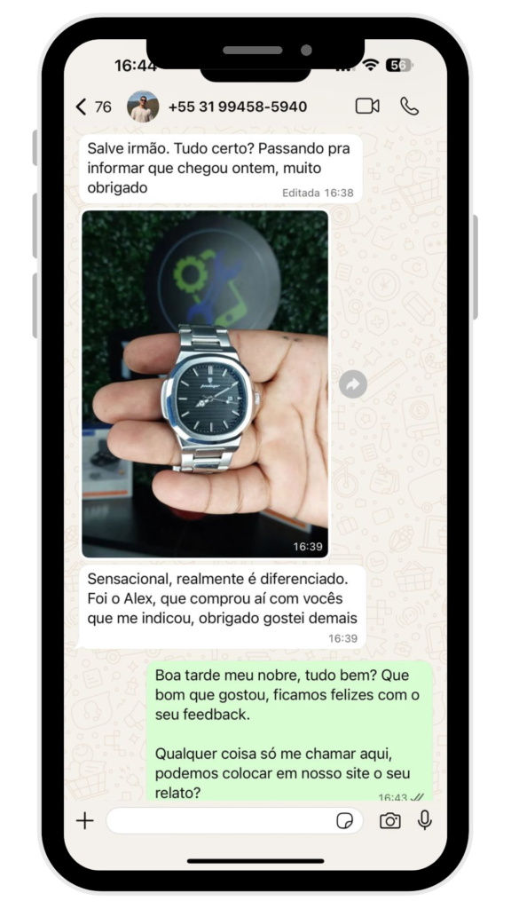 Veja algumas fotos abaixo enviadas pelos nossos próprios clientes. Após chegar o seu pedido, avalie a compra com uma foto e ganhe um cupom de 5% OFF para comprar o seu próximo relógio em nossa loja: